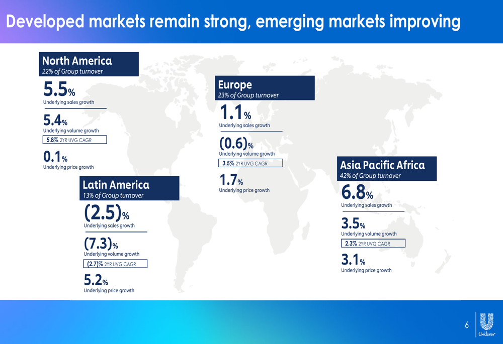 Unilever’s regional performance revealed stark contrasts across its global operations. North America and Asia Pacific Africa delivered robust growth, while Europe showed modest gains and Latin America faced significant challenges.