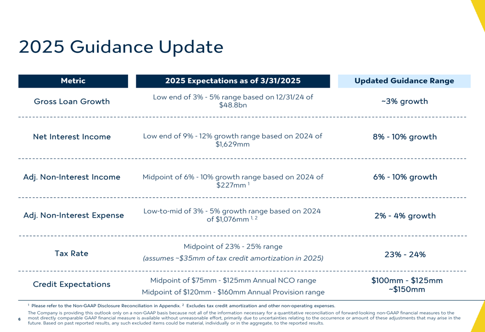 Valley National provided updated guidance for 2025, adjusting some of its previous projections while maintaining an optimistic outlook for continued improvement. The following chart details the updated guidance: