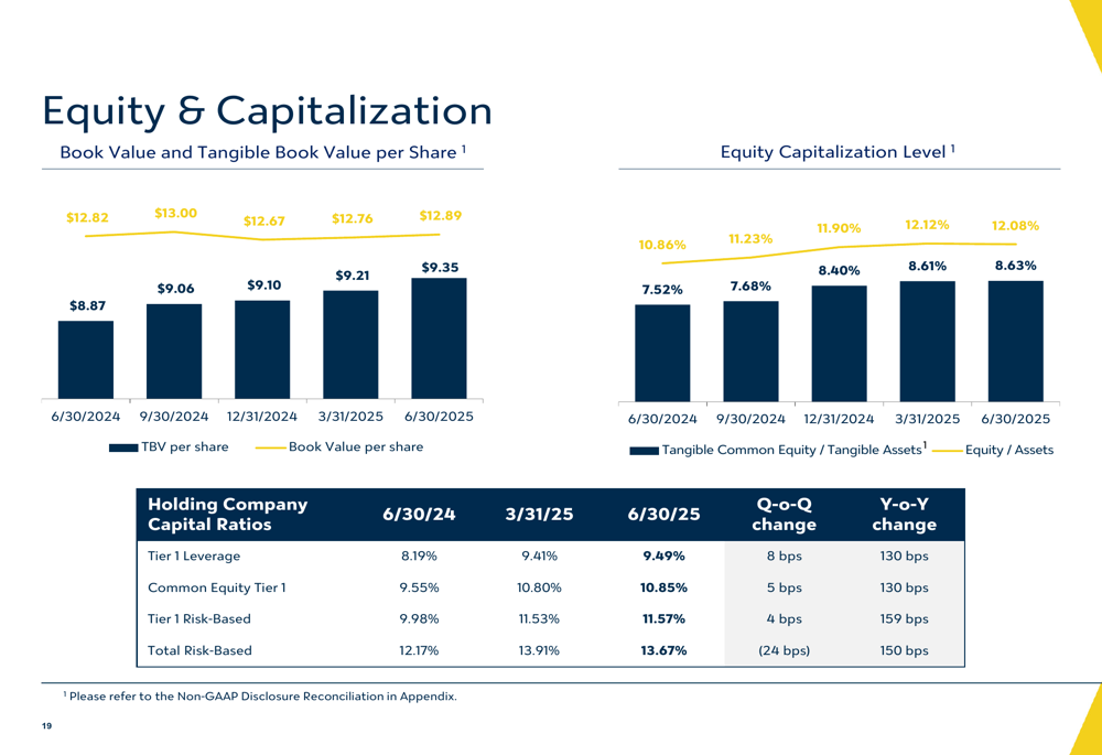 Valley’s equity position continues to strengthen, with tangible book value per share showing consistent growth and tangible common equity to tangible assets improving to 8.63% as of June 30, 2025, up from 7.52% a year earlier.