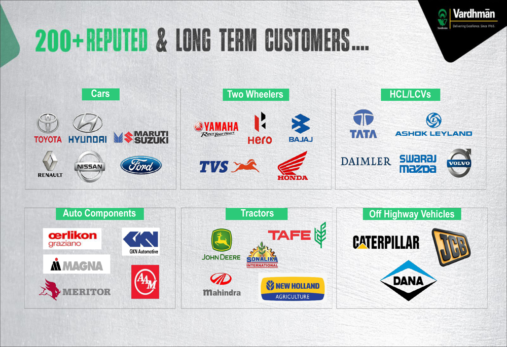 Vardhman Special Steels has established itself as one of India's leading steel bar producers for automotive applications. The company serves over 200 reputed customers, including major automotive manufacturers like Toyota, Hero Moto Corp, and Caterpillar. Its product applications span various automotive components such as axle gears, stabilizer bars, pistons, and crankshafts.