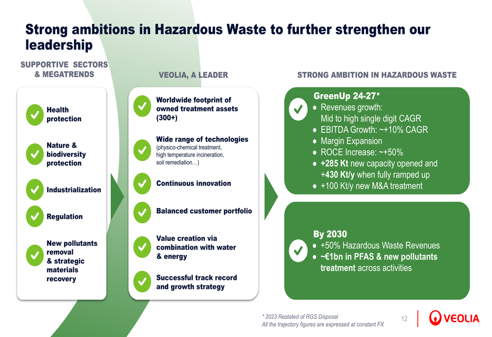 Similarly, in hazardous waste management, Veolia aims to capitalize on increasing regulatory requirements and growing industrial demand for specialized treatment solutions: