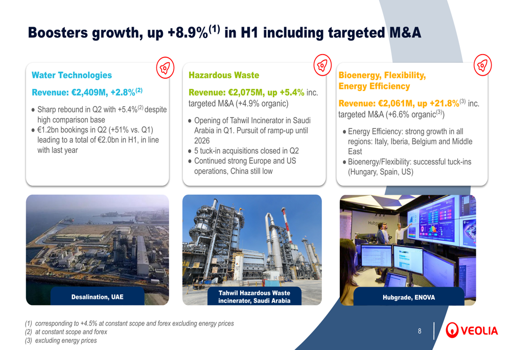 Meanwhile, the company's "Boosters" segments showed impressive growth of 8.9% in H1, driven by strategic investments in water technologies, hazardous waste treatment, and energy efficiency solutions: