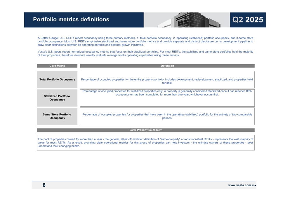 Vesta’s occupancy metrics show a concerning trend across its portfolio categories. Total portfolio occupancy decreased to 92.3% in Q2 2025 from 95.0% in Q2 2024, while stabilized portfolio occupancy declined to 95.5% from 97.5%. Same store portfolio occupancy also experienced a slight decrease to 97.0% from 97.8%.