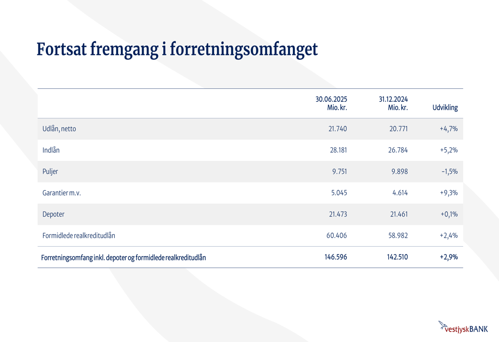 Deposit growth was even stronger at 5.2%, reaching 28,181 million DKK. The bank also reported acquiring more than 3,000 new customers during the period, contributing to a 2.9% increase in total business volume.