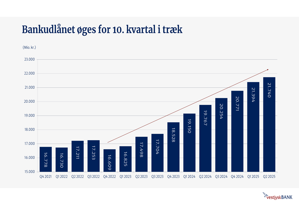 The bank’s lending volume reached 21,740 million DKK as of June 30, 2025, representing a 4.7% increase from year-end 2024. This growth continues a consistent upward trend spanning ten consecutive quarters, as illustrated in the following chart: