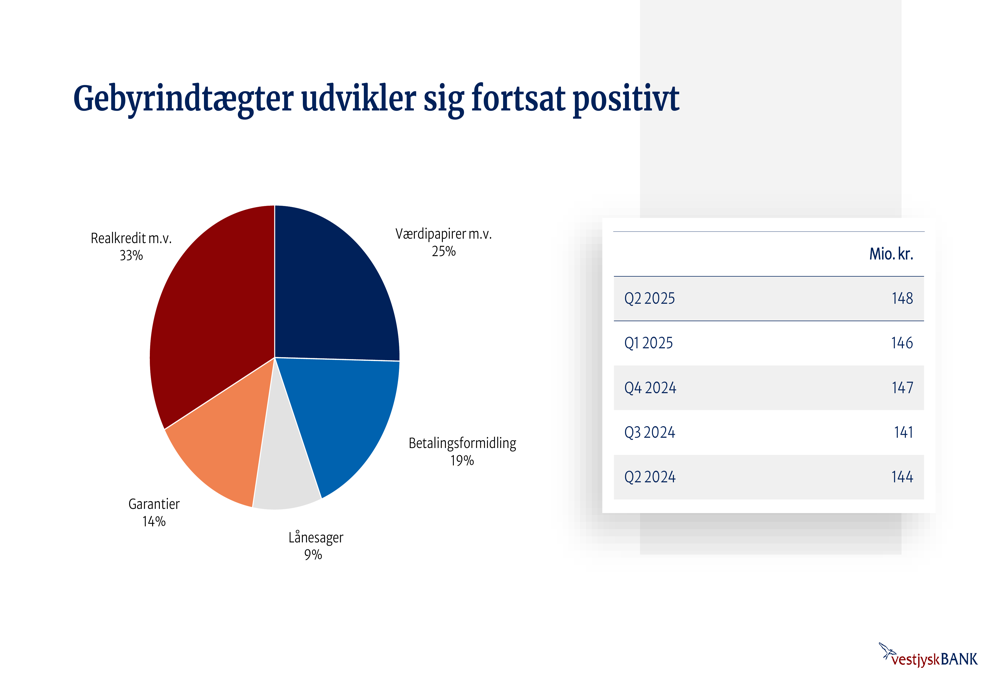 Fee income continued its positive development, with quarterly fee income reaching 148 million DKK in Q2 2025. Mortgage-related fees represented the largest category at 33% of total fee income, followed by securities (25%) and payment services (19%).