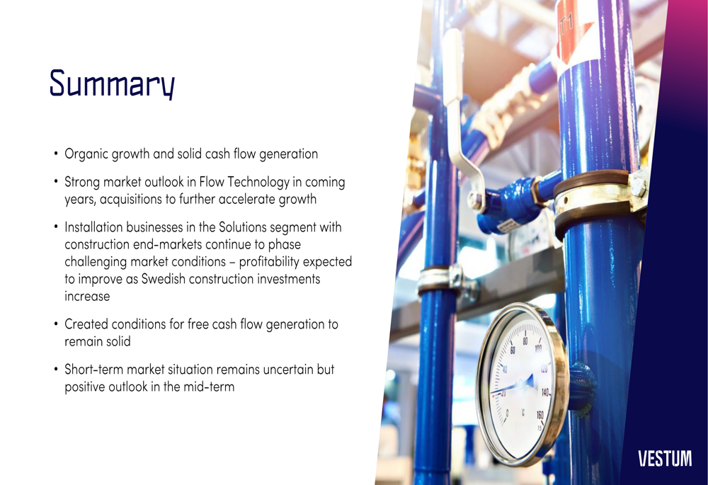 Vestum’s three business segments showed divergent performance, with Flow Technology emerging as the standout performer.