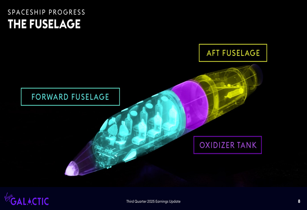 Virgin Galactic's presentation heavily emphasized progress in spacecraft manufacturing, with detailed updates on various components of their next-generation spaceships. The company continues to document its manufacturing journey through a "We Build Spaceships" video series, highlighting different aspects of the construction process.