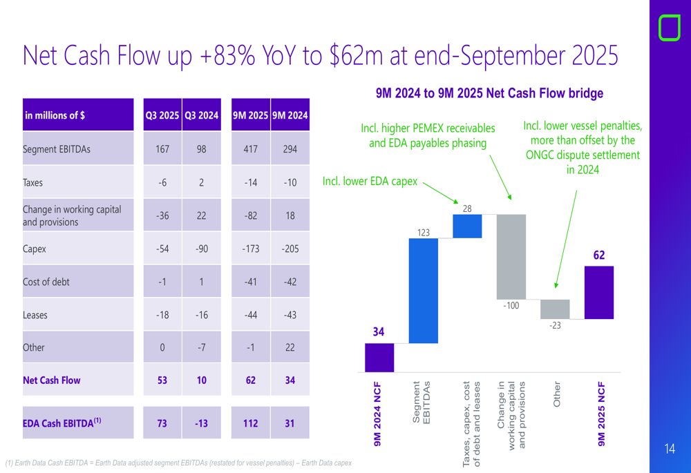 Cash flow generation has been a key focus for Viridien, with net cash flow reaching $62 million for the first nine months of 2025, an 83% increase compared to the same period in 2024. The following breakdown illustrates the components of this cash flow performance: