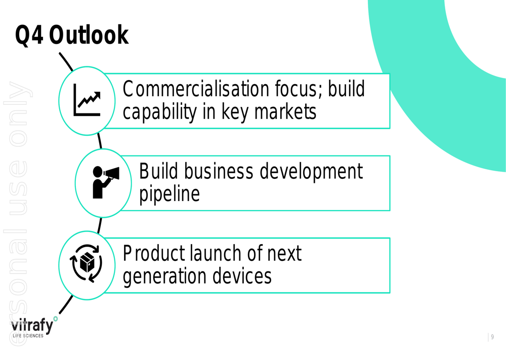 Looking ahead to Q4 FY2025, Vitrafy outlined three key focus areas: commercialization and capability building in key markets, expanding the business development pipeline, and preparing for the launch of next-generation devices.