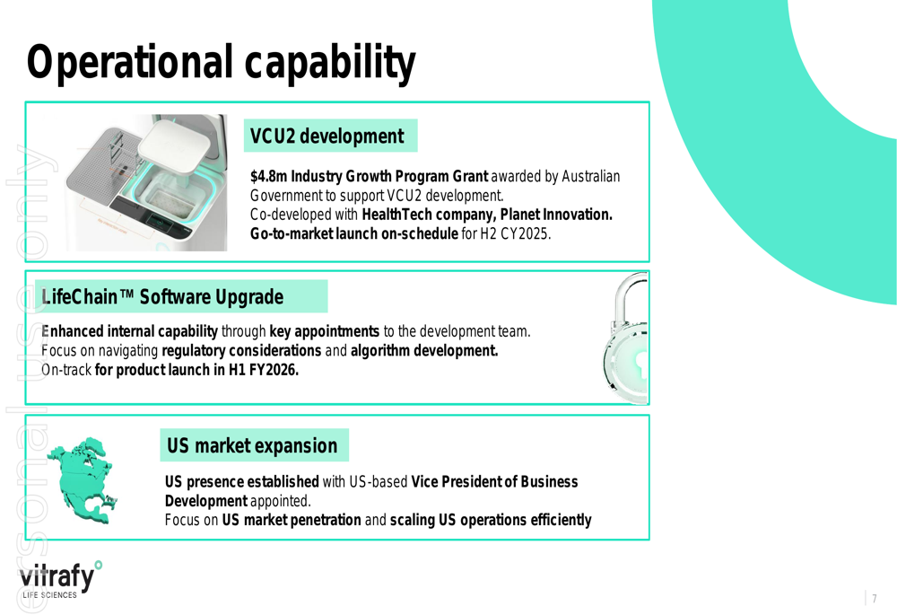 The company is also upgrading its LifeChain™ software, focusing on regulatory considerations and algorithm development, with a product launch targeted for the first half of FY2026. Simultaneously, Vitrafy is expanding its US presence through the appointment of a US-based Vice President of Business Development.