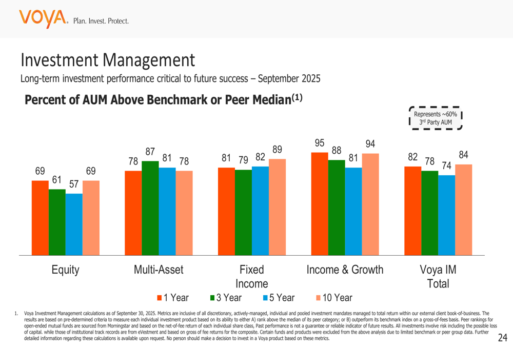 Looking ahead to Q4 2025, Voya provided several modeling considerations, including expected Defined Contribution net outflows of $2-4 billion, net expenses in Employee Benefits between $245-255 million, and a Corporate operating loss between $90-100 million.