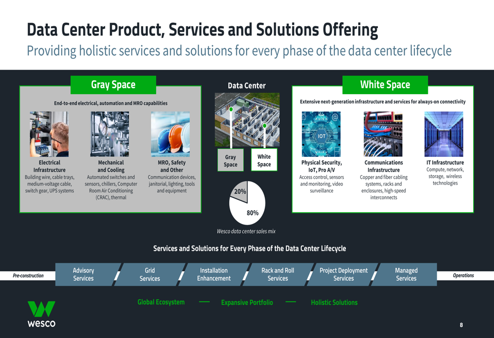 WESCO’s data center sales mix currently stands at 20% Gray Space and 80% White Space, as shown in this breakdown of their offerings: