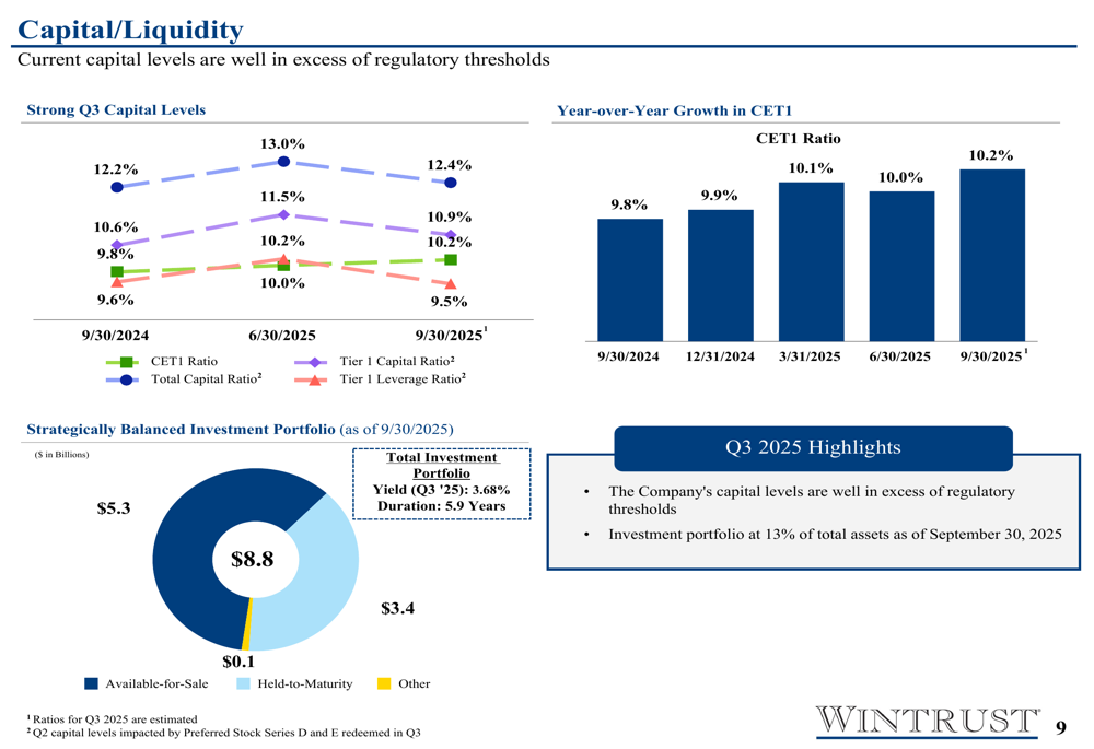 Wintrust’s Q3 2025 presentation slides reveal a company with strong momentum, delivering record earnings while maintaining disciplined growth and risk management. The consistent improvement in key metrics, coupled with the company’s diversified business model and strong market position, positions Wintrust well for continued success in the competitive banking landscape.