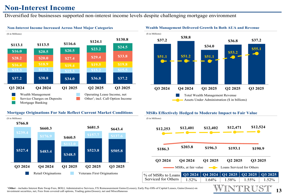 Non-interest income showed improvement across most major categories in Q3 2025, contributing to the company’s strong overall performance. The following chart illustrates the trends in various non-interest income components: