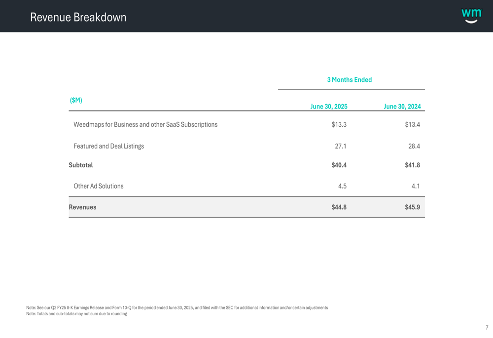 A deeper analysis of WM Technology's revenue composition reveals that the decline was primarily driven by a reduction in Featured and Deal Listings, which fell from $28.4 million in Q2 2024 to $27.1 million in Q2 2025. However, the company saw growth in Other Ad Solutions, which increased from $4.1 million to $4.5 million year-over-year.