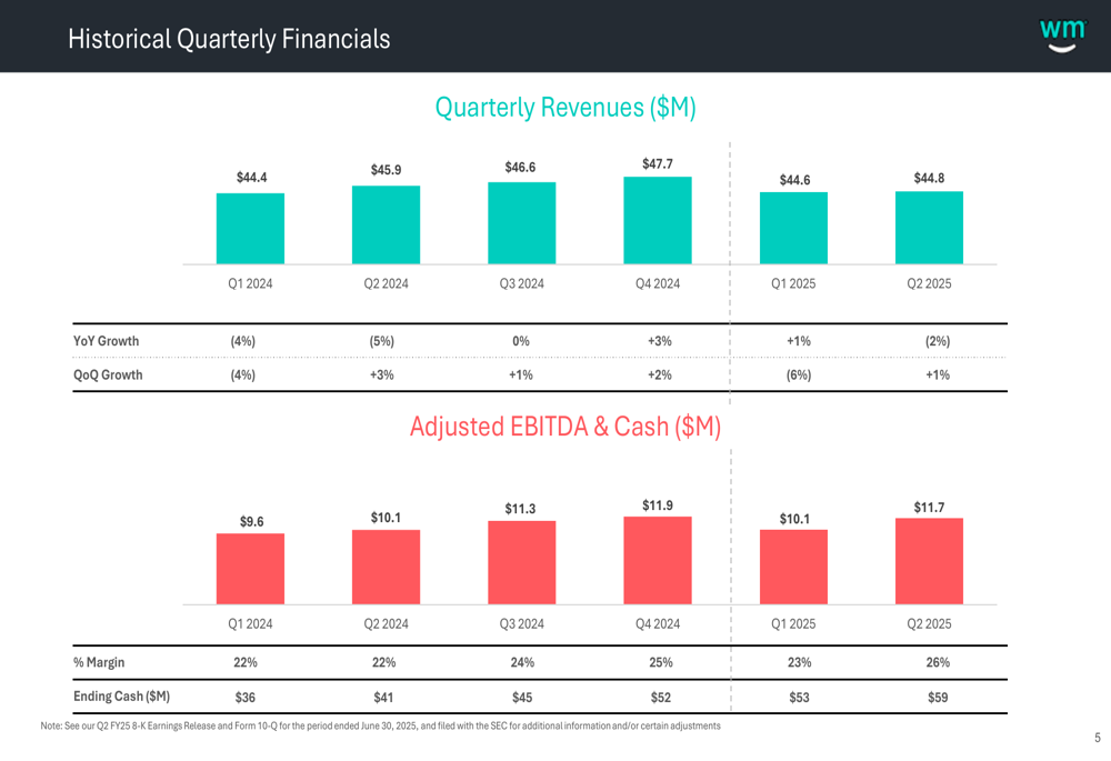 WM Technology, Inc. (NASDAQ:MAPS) released its second quarter 2025 financial results on August 7, 2025, revealing a mixed performance with declining revenue but improved profitability. The cannabis technology company, which operates the Weedmaps platform, continues to navigate a challenging market environment characterized by pricing pressures and regulatory uncertainties in the cannabis sector.