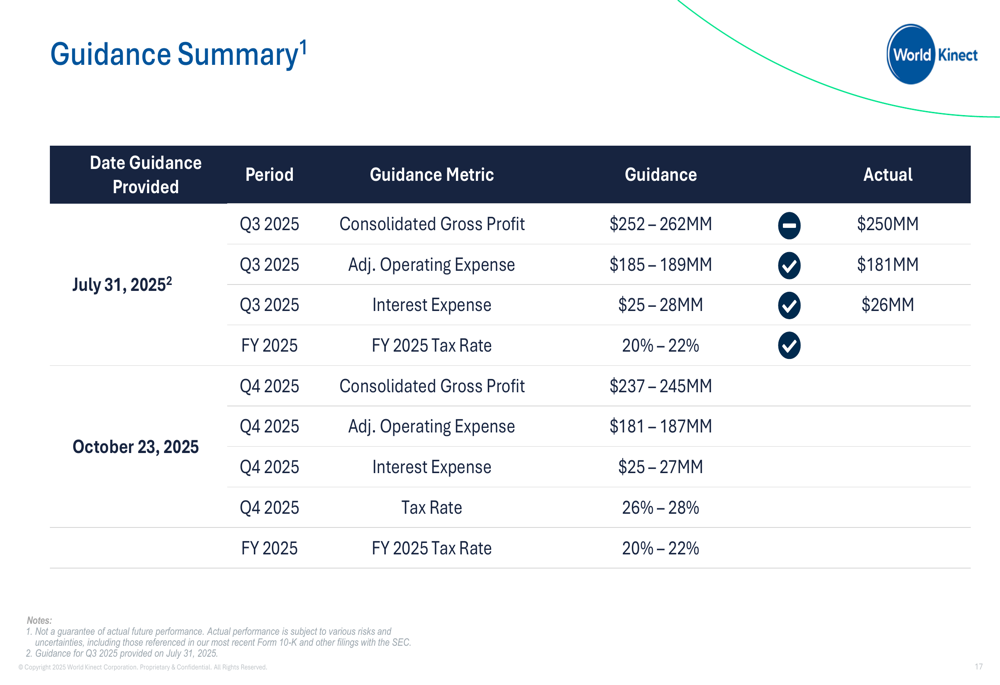 World Kinect provided a comprehensive guidance summary for the upcoming quarter: