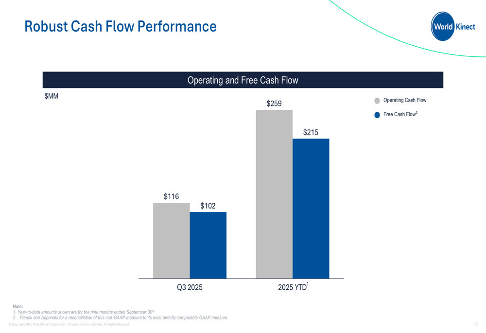 Operating cash flow reached $116 million in Q3 2025, with free cash flow of $102 million. For the year-to-date period, operating cash flow totaled $259 million, with free cash flow of $215 million. This strong cash generation provides financial flexibility for the company despite profitability challenges.