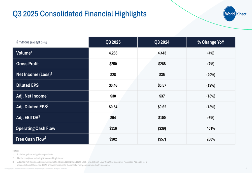 World Kinect’s consolidated financial results showed declines across most key metrics compared to the same period in 2024, though cash flow metrics demonstrated significant improvement.