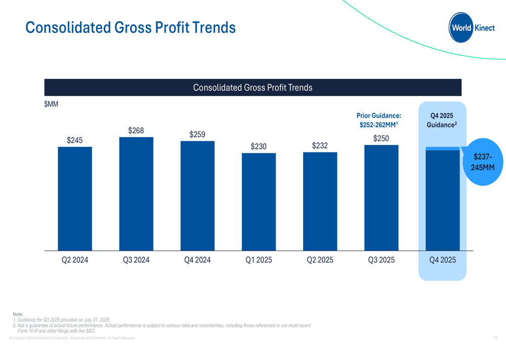 World Kinect’s consolidated gross profit has shown fluctuations throughout recent quarters, with the latest results showing some recovery from the lows earlier in the year: