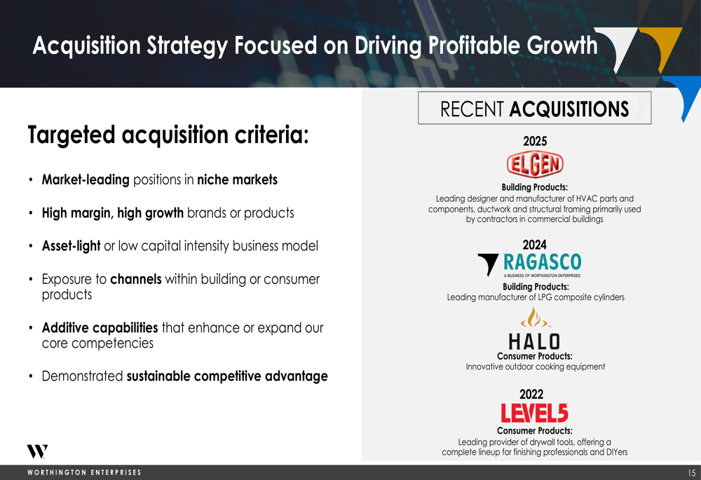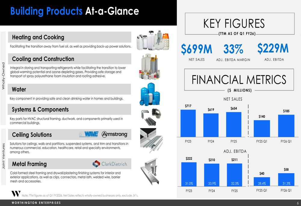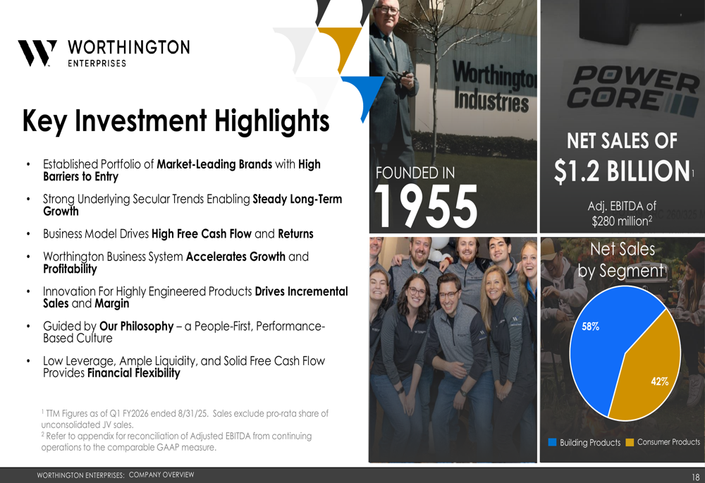 Worthington’s presentation emphasized its portfolio of market-leading brands and strategic positioning to capitalize on secular trends including U.S. infrastructure investment, housing supply growth, and reshoring of manufacturing.