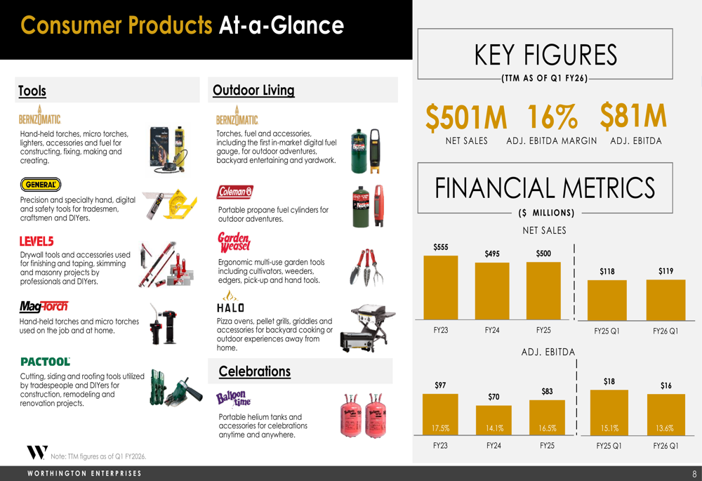 The Consumer Products segment houses well-known brands across tools, outdoor living, and celebrations categories. While this segment faced some margin pressure in Q1, it remains an important part of Worthington’s diversified portfolio.