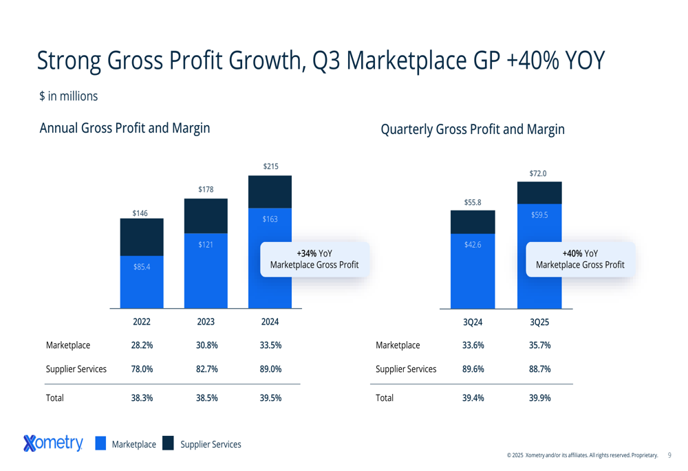 Marketplace gross margin expanded to 35.7% in Q3 2025, an increase of 210 basis points year-over-year, which the company attributes to its AI-powered pricing and selection capabilities. Meanwhile, supplier services maintained a strong gross margin of 88.7%, primarily through Thomas core advertising.