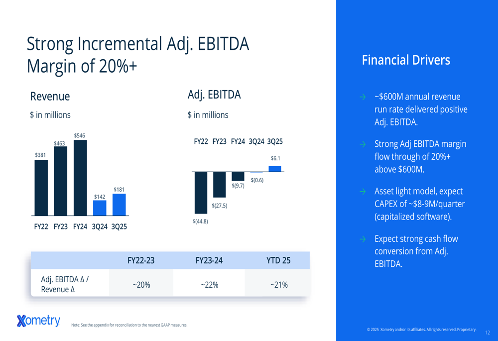 Notably, Xometry achieved positive Adjusted EBITDA of $6.1 million in Q3 2025, a substantial improvement of $6.8 million compared to the $0.6 million loss reported in Q3 2024. This represents 3.4% of revenue, demonstrating the company’s progress toward sustainable profitability.
