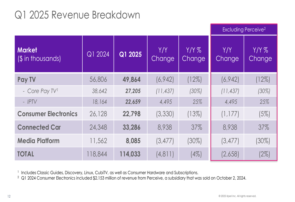 "Our first quarter results demonstrate our continued focus on operational efficiency and strategic growth initiatives," said Jon Kirchner, CEO of Xperi. "While we faced some revenue headwinds, our cost transformation efforts and growth in key segments like Connected Car have positioned us well for the remainder of 2025."