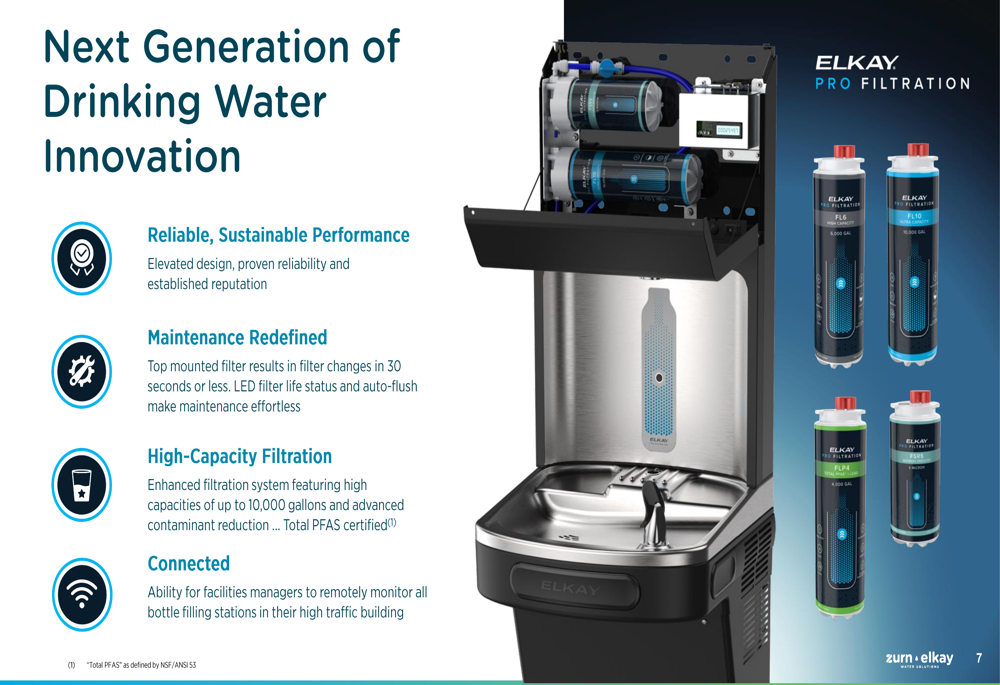 Zurn Elkay highlighted several strategic developments during the presentation, including the launch of Elkay Pro Filtration, a next-generation drinking water innovation designed to provide reliable, sustainable performance with high-capacity filtration capabilities.